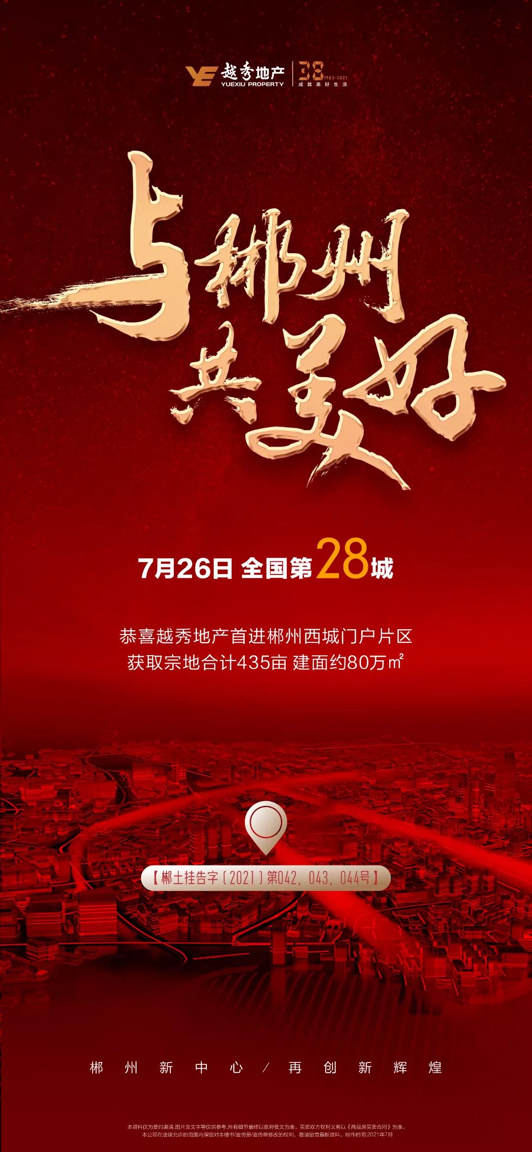 7月26日,db电竞地产成功摘得湖南郴州市郴土挂告字〔2021〕第042、043、044号地块,实现落子郴州。这是db电竞地产拓展华中区域市场的重要步骤,更是db电竞地产“1+4”全国化布局战略的进一步深化与完善。