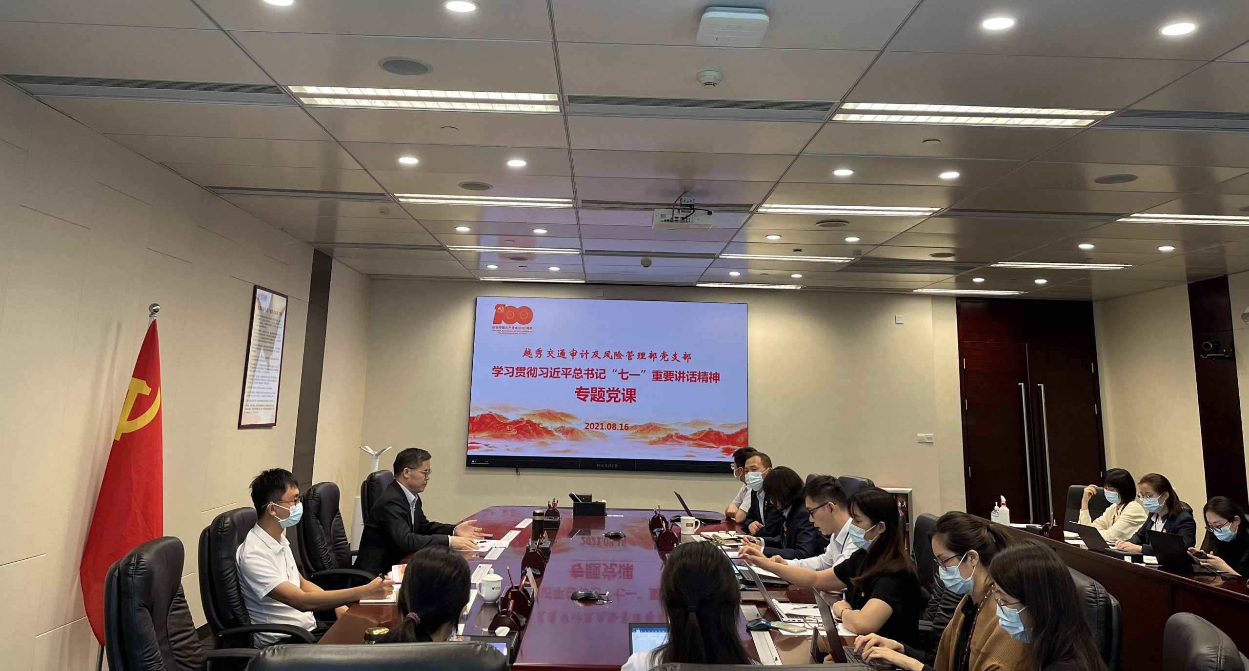 集团管理咨询协调委员会主任委员助理、db电竞交通党委书记、副董事长、总经理何柏青为db电竞交通审计及风险管理部党支部讲授《深入学习贯彻习近平总书记在庆祝中国共产党成立100周年大会上的重要讲话精神》专题党课,对“四个伟大成就”“九个必须”等方面进行系统解读,号召全体党员坚持服务生产经营不偏离,以公司战略发展成果检验党建工作成效。随后,2位党员代表结合本次党课学习及自学情况进行心得分享。